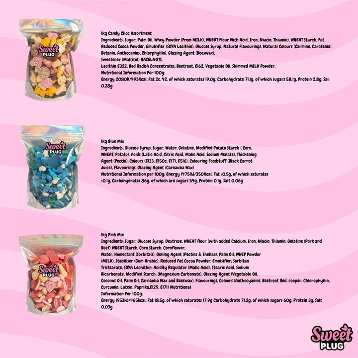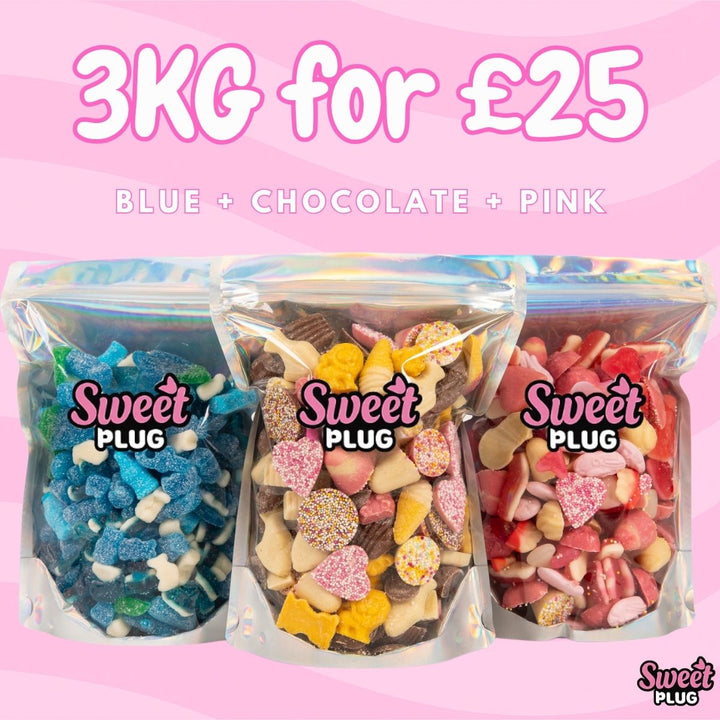 3kg for £25! 1kg Chocolate + 1kg Pink + 1kg Blue