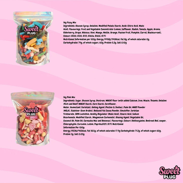 3kg for £25! 1kg Fizzy + 1kg Fizzy + 1kg Pink Candy Sweet Bags