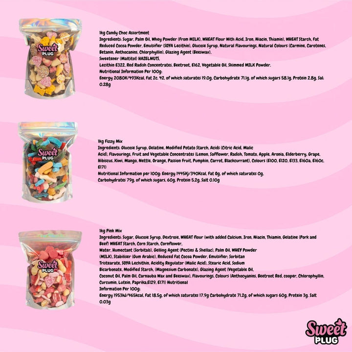3kg for £25! 1kg Pink + 1kg Fizzy + 1kg Chocolate
